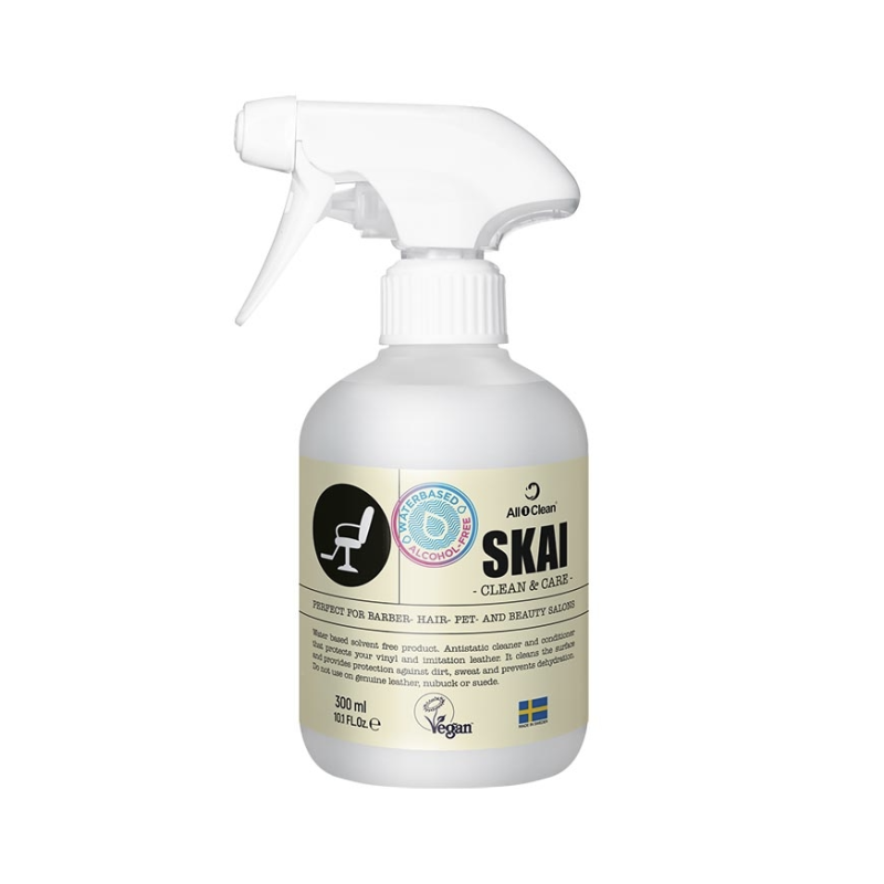 DISICIDE Skai je antistatický čisticí sprej na vodní bázi bez alkoholu a rozpouštědel, který šetrně čistí a zároveň chrání povrchy z ekokůže, koženky, vinylu či PU materiálů. Odstraňuje každodenní špínu, pot a skvrny, zabraňuje dehydrataci materiálu a pomáhá prodloužit jeho životnost.
