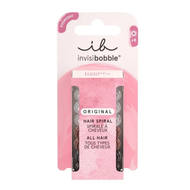 Vlasové gumičky Invisibobble® Original jsou díky svému spirálovitému tvaru ohleduplné k vlasům, netahají, nelámou, nevytváří na vlasech otlak, ani v nich nezanechávají stopy. Jsou hygienické, voděodolné a díky svému hladkému povrchu se nezamotají do suchých ani do mokrých vlasů. Balení obsahuje 8ks gumiček v několika barevných variantách.