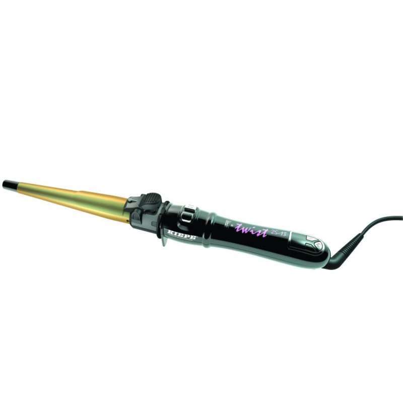 Profesionální samonavíjecí konická kulma s dvojitou rotací pro spirálové lokny o velikosti 25 mm zužující se na 13 mm.