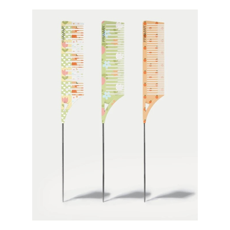 Sada tří Framar melírovacích hřebenů s prodlouženou špičkou.