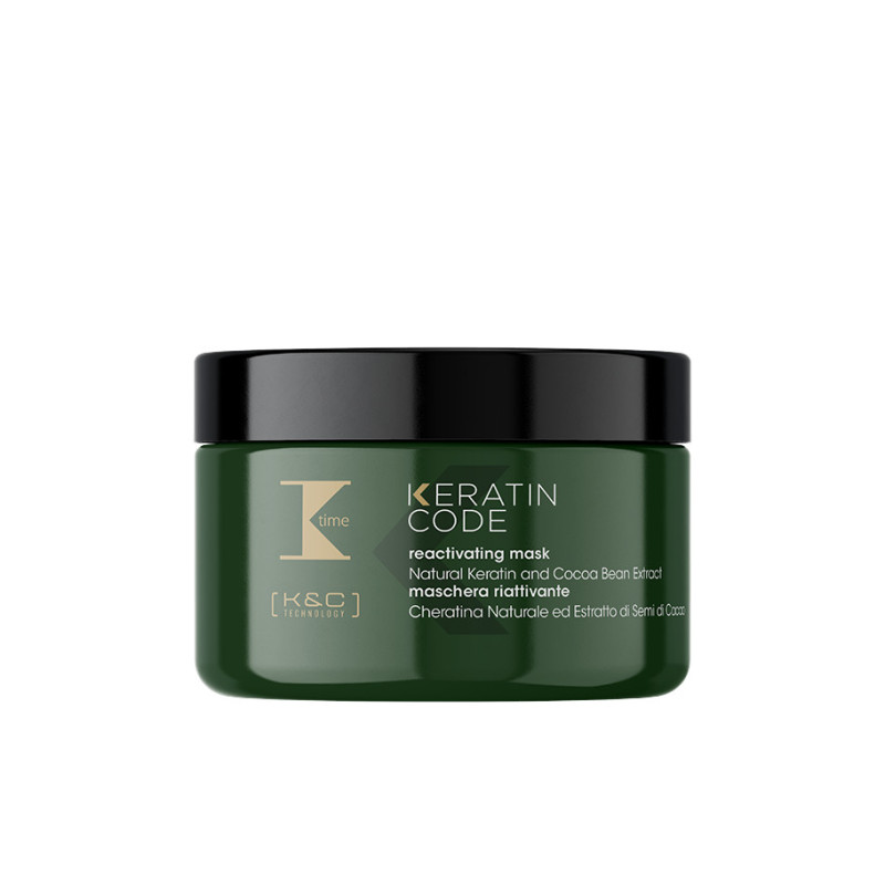 Reaktivační maska na domácí použití, která díky svému složení na bázi keratinu a extraktu z kakaových semínek zintenzivňuje a prodlužuje výsledky vyhlazující kúry Keratin Code.