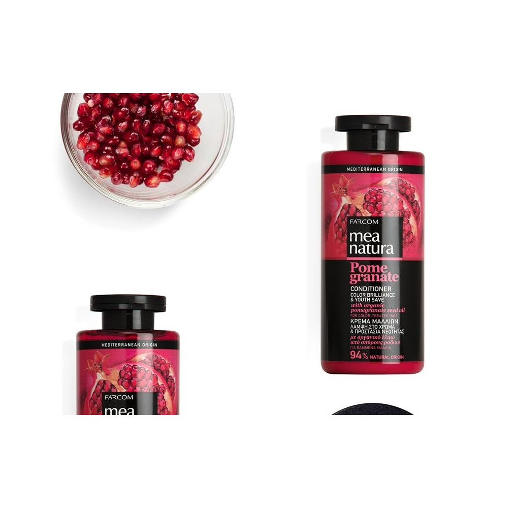 Kondicionér s výtažky ze semen z granátového jablka. Dále obsahuje polysacharidy a slunečnicový extrakt – směs bohatá na vitamíny s hydratačním a antioxidačním účinkem. Obnovuje hedvábnou texturu vlasu a mladistvý vzhled. Napomáhá rozčesávání vlasů. NEOBSAHUJE: PARABENY, SILIKONY ALKOHOL ANI SYNTETICKÁ BARVIVA. Dermatologicky testováno. Použití: Po umytí šamponem naneste na vlhké vlasy a vmasírujte do vlasů. Nechte působit 2-3 minuty a poté důkladně opláchněte.
