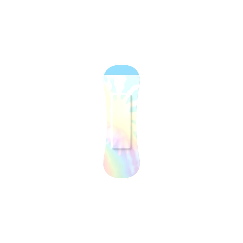 Balení dvaceti 100% voděodolných náplastí ve třech velikostech s motivem duhy.