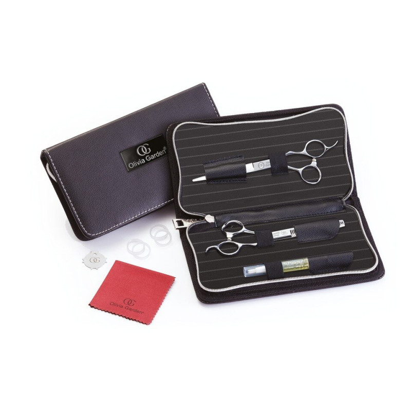 Profesionální kadeřnické nůžky v sadě s olejem a hadříkem. Vše v atraktivním pouzdře.