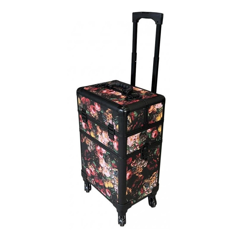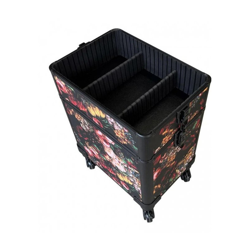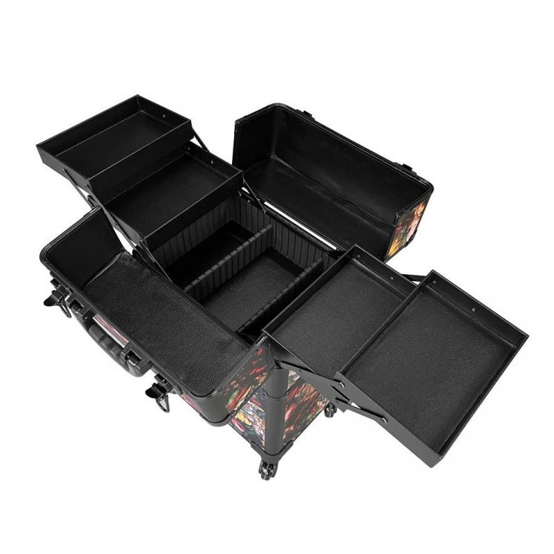 Kufřík je zamykatelný. Horní část má rozkládací přihrádky.