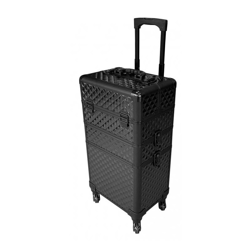 Černý multifunkční kufr na kolečkách. Kufr lze zmenšit o středovou část nebo lze použít vršek jako samostatný kufřík.