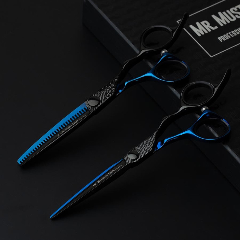 Kadeřnické nůžky MR. MUSTACHE Craft Black-Blue - 5,5" / 6,0"