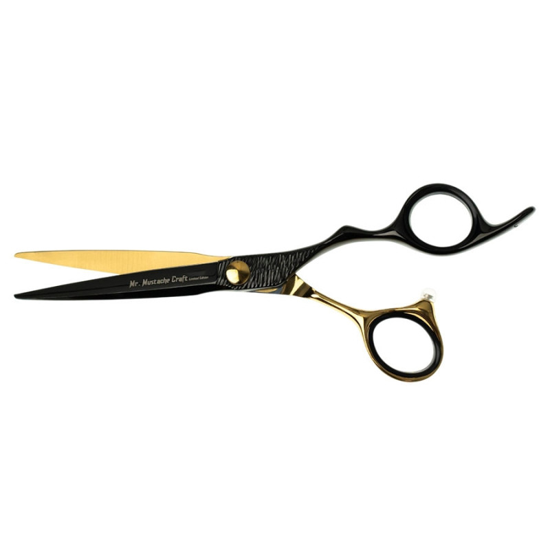 Nůžky MR. MUSTACHE Craft Black-Gold jsou perfektní volbou pro všechny běžné kadeřnické techniky: