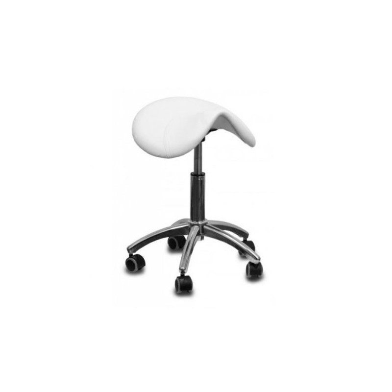 Kosmetická židle sedlo v bílé barvě.