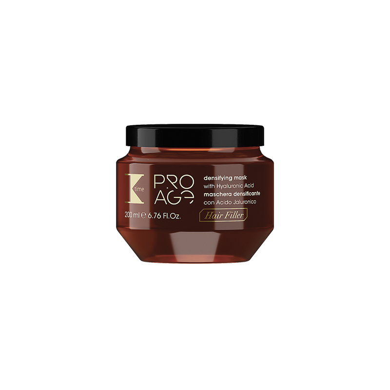 Liftingová maska s botoxovým efektem. Jeden z čtyř produktů vlasového botoxu. Intenzivní posilující maska s okamžitým protistárnoucím, uhlazujícím a regeneračním účinkem, zajišťujcí lesk vlasů. Obsahuje KYSELINU HYALURONOVOU a HYDROLIZOVANÝ KERATIN. Vyživuje vlas do hloubky, uhlazuje otevřené kutikuly suchých vlasových vláken, navrací jim jejich hydrataci. Použití: Pro posílení účinku masky lze nejdřív aplikovat sérum po dobu 15min. Poté naneste na vlhké vlasy masku a nechte ji působit po dobu 5 minut. Opláchněte. Používejte po použití šamponu pro-age ze stejné řady. Prodej výhradně v profesionálních salonech.