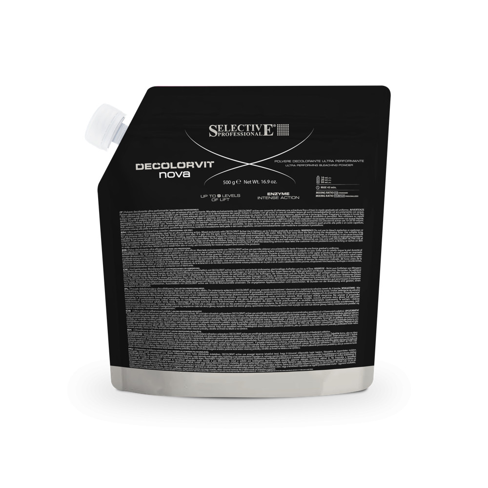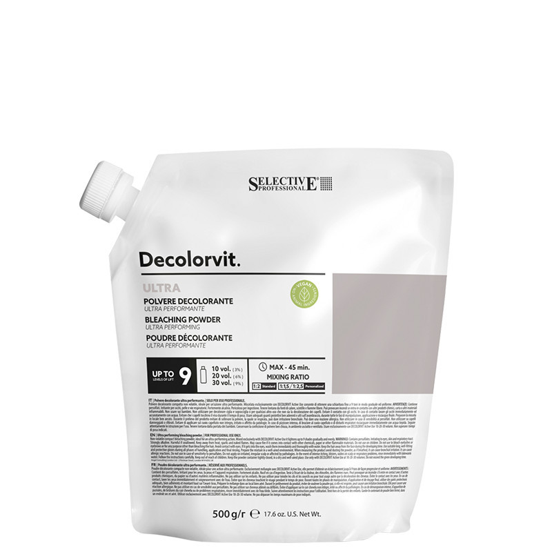 Kompaktní netěkavý odbarvovací prášek, ideální pro ultra výkonný účinek. Stejnoměrné a pravidelné zesvětlení jak na přírodních, tak na barvených vlasech. Složení namíchané výhradně s kosmetickým peroxidem ACTIVE USE umožňuje zesvětlení až o 9 tónů. Vyznačuje se snadným mícháním a použitím, neboť směs je hladká, homogenní a kompaktní. Modré zbarvení napomáhá neutralizaci teplých odlesků. Konzistence šitá na míru kadeřníka.