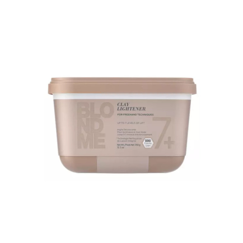 Schwarzkopf Professional BlondMe Clay Lightener 7+ je zesvětlující jílovitý pudr, který byl navržený pro techniky volné ruky a balayage styly. Jeho integrovaná Anti-Metal Bond Protection technologie nabízí optimální ochranu vlasů, neboť chrání vlasové vazby během procesu zesvětlování a minimalizuje riziko jejich lámání. Jedinečná receptura, která se snadno nanáší, nabízí až 7 úrovní zesvětlení pro vlasové základy od 3 do 8, což umožňuje širokou škálu možností při tvorbě přirozeného a multidimenzionálního vzhledu. Výhodou pudru je také to, že během procesu zesvětlení nejsou potřeba žádná bonding aditiva ani ošetření proti kovům.