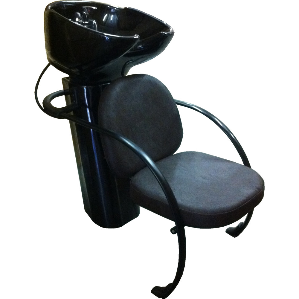 Pohodlný kadeřnický mycí box v černém provedení, mísa je bílá.