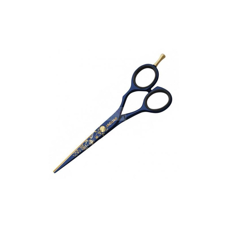 Kadeřnické nůžky Jaguar Solingen JaguarT 45255-26 v elegantním modrém designu se zlatými květy Golden Blossom.