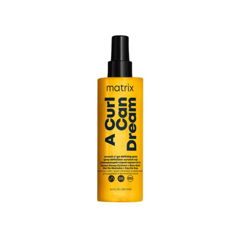 Vylepšete své kudrny a vlny pomocí definujícího spreje Matrix Total Results A Curl Can Dream Scrunch N' Go. Dosáhněte svých vysněných kudrlin a užívejte si krásně definované vlny a kudrny bez krepatění po celý den.