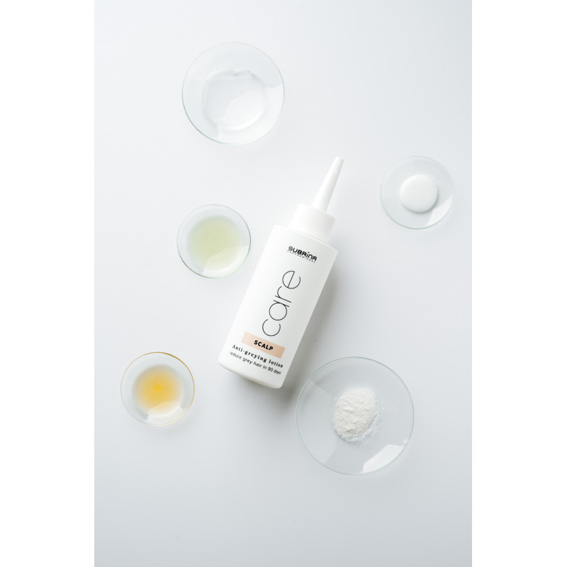 Anti-Greying Lotion je denně používaná péče, která postupně obnovuje přirozenou barvu vlasů tím, že stimuluje produkci melaninu ve vlasových folikulech. Na rozdíl od tradičních barev působí na úrovni kořínků a poskytuje dlouhodobé řešení šedivění.