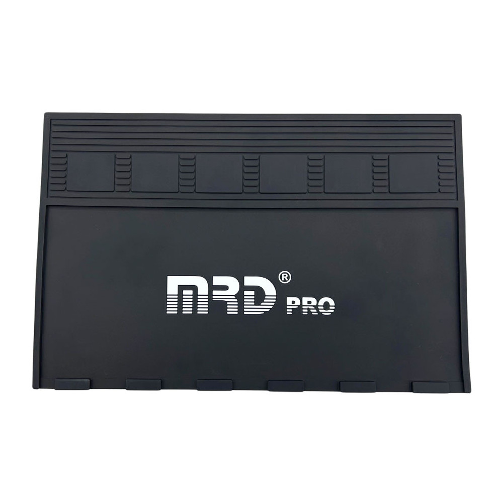 Magnetická barber podložka na strojky a kadeřnické nástroje MRD Pro Magnetic pad. Ochraňuje a zabraňuje odření stříhacích nástrojů, břitev, nůžek a dalšího holičského náčiní, zároveň chrání i před poškozením pracovní plochu. Je snadno omyvatelná a její rozměr je 49 x 33 cm.