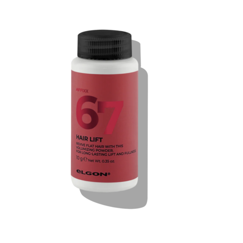 Pudr pro objem 67 Hair Lift dodá vlasům okamžitý nadzvednutý efekt a texturu s pružnou, středně silnou fixací. Snadno se aplikuje ke kořínkům i do délek a je ideální pro styling, drdoly i účesy na speciální příležitosti. Vhodný pro všechny typy vlasů.