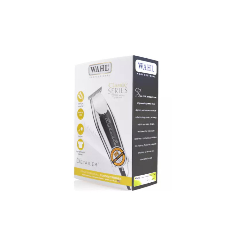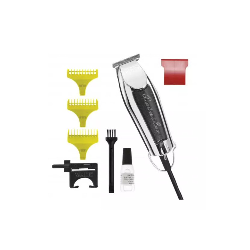 Profesionální mini stříhací strojek na vlasy Wahl Detailer 08081-026 s kvalitní kovovou chromovanou střihací hlavicí o šířce 35 mm, s šířkou stříhacího nože 32 mm, s výškou střihu 0,4 mm. Délka strojku je pouhých 120 mm a šířka 40 mm, velmi dobře se s ním manipuluje.