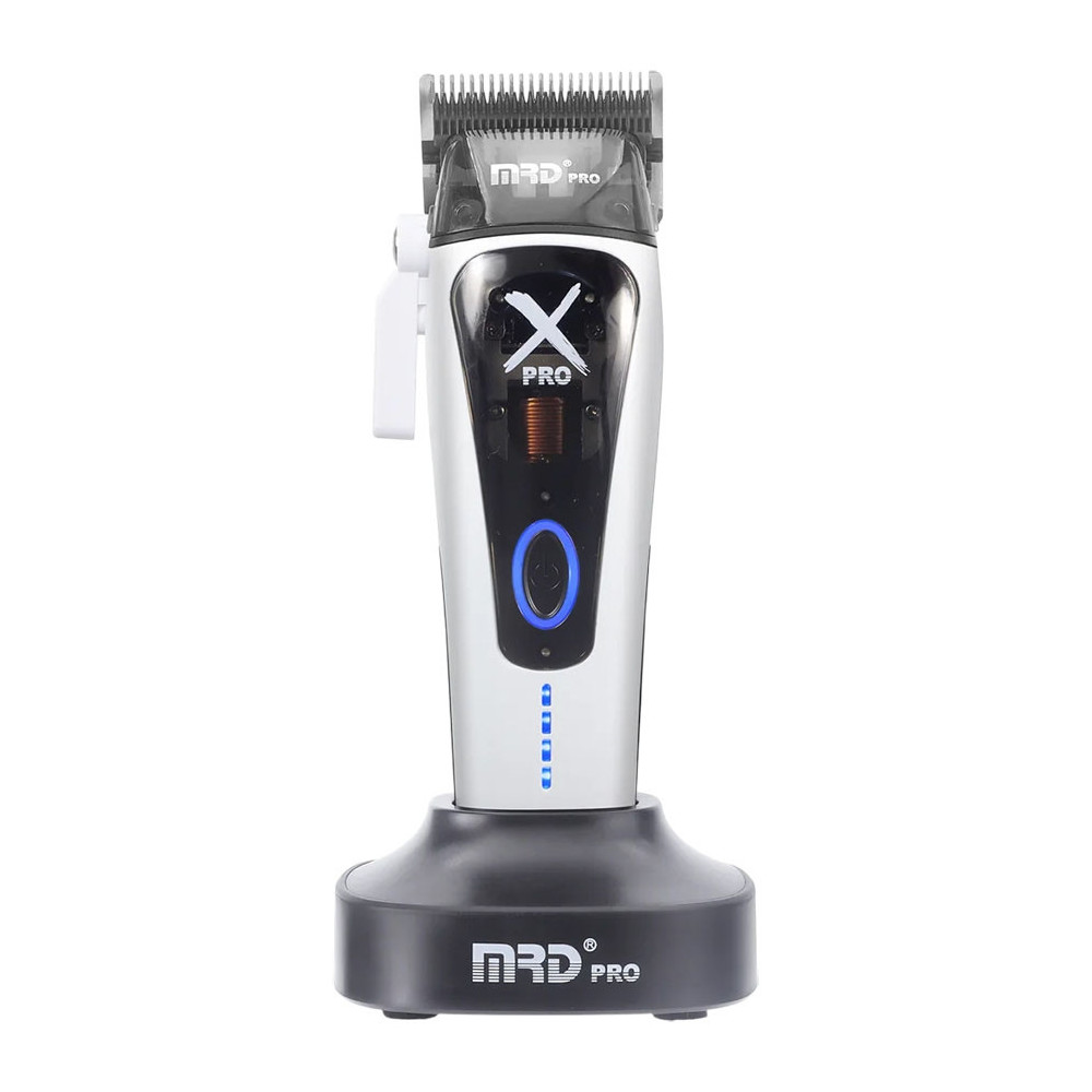Prémiový střihací strojek na vlasy MRD Pro X-Pro clipper White s revolučním vektorovým motorem, až 13000 ot. / min. a precizní DLC čepelí z japonské oceli s nastavitelnou výškou střihu od 0,3 do 4 mm. Silný, tichý, přesný a ideální pro moderní barber shopy i náročné profesionály.