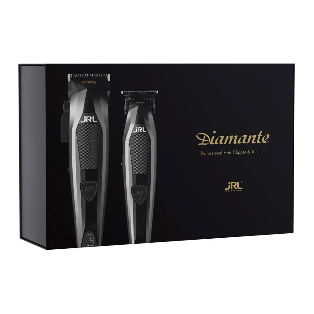 JRL Diamante collection Black je sada výkonného střihacího strojku 2025C-B clipper a precizního konturovacího strojku 2025T-B trimmer v černé barvě. Spojení inovativních strojků s extrémním výkonem, tichým chodem a moderním designem.