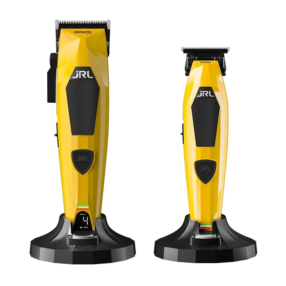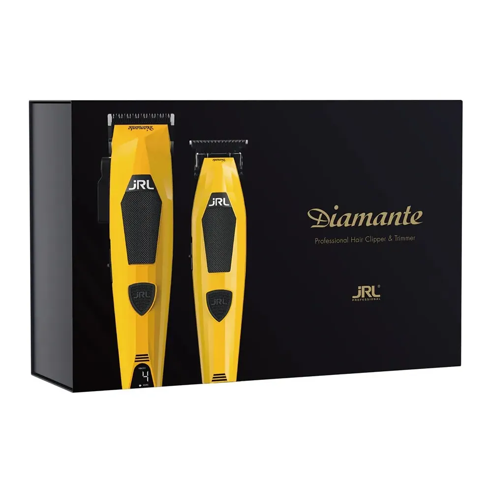 JRL Diamante collection Yellow je sada výkonného střihacího strojku 2025C-Y clipper a precizního konturovacího strojku 2025T-Y trimmer ve žluté barvě. Spojení inovativních strojků s extrémním výkonem, tichým chodem a moderním designem.