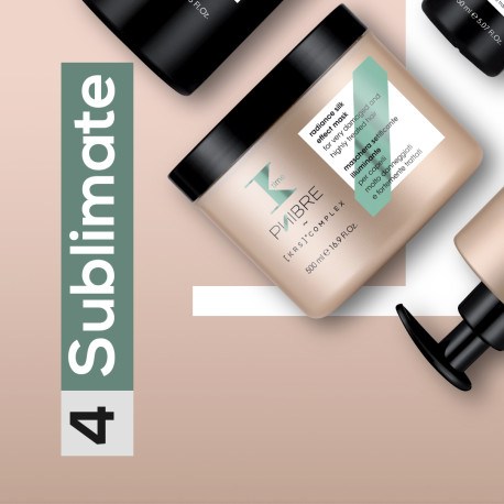 Rozjasňující hedvábná maska zanechává vlasy měkké, hedvábné a zářivé. Synergie účinných látek v komplexu [KRS] + prodlužuje výhody léčby Salon Phibre.