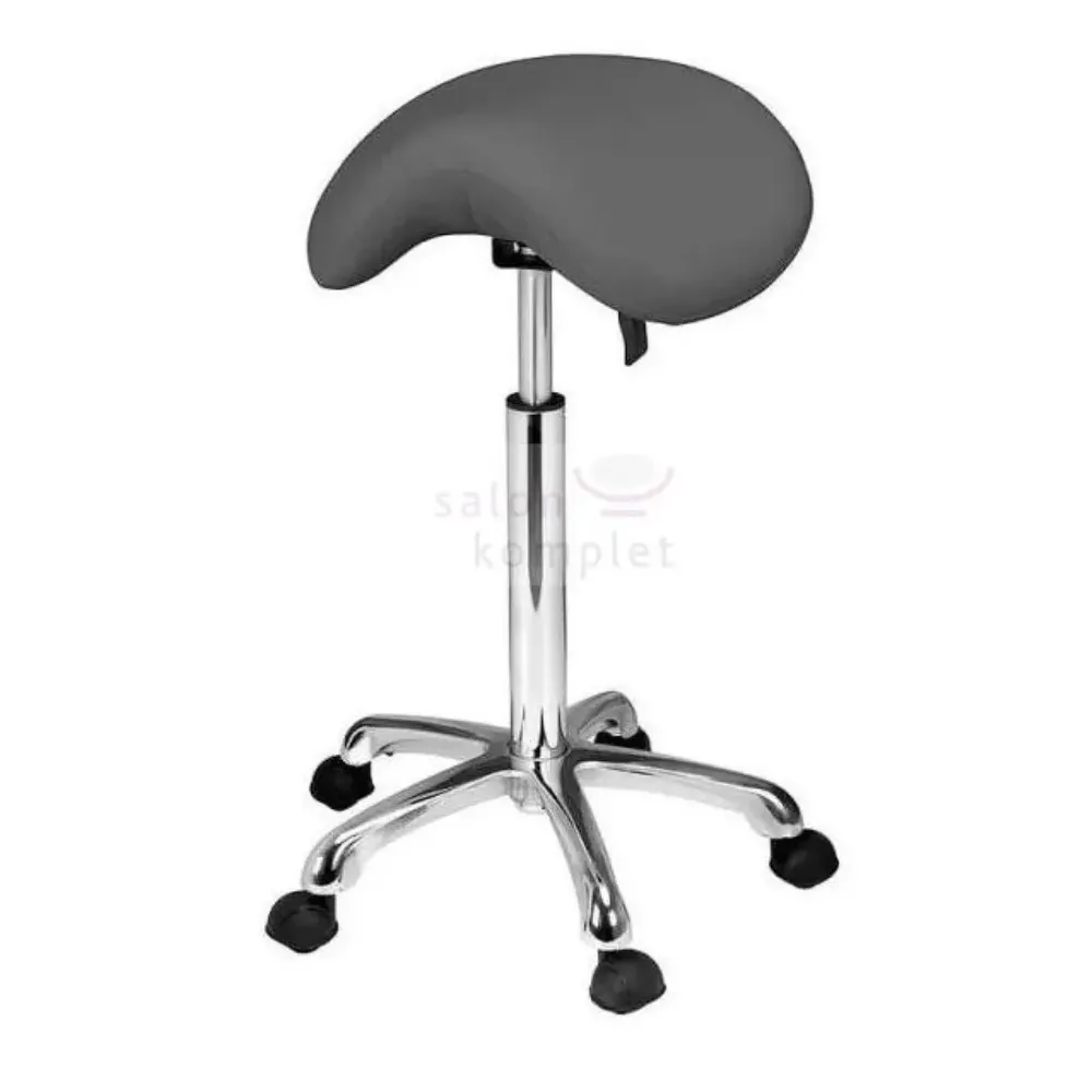 Kosmetická židle sedlo v šedé/černé/bílé barvě.