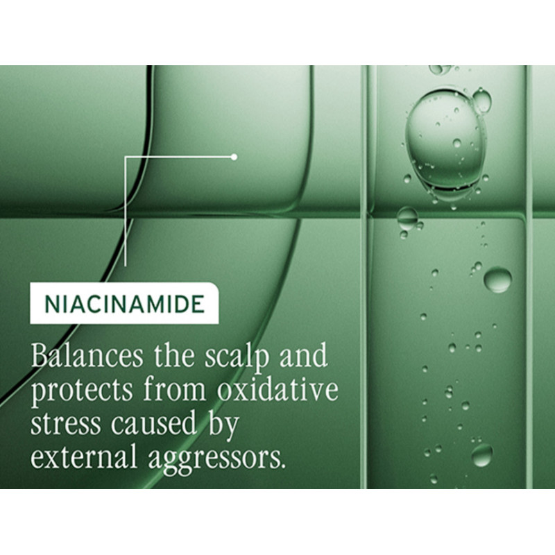 Posiluje vlasy u kořínků a dodává rovnováhu vlasové pokožce pro plnější vzhled rostoucích vlasů. Komplexní ochrana proti stresorům pro rovnováhu vlasové pokožky spolu s posílením vlasů od kořínků až po konečky. Neutralizuje volné radikály, které mohou způsobovat stres vlasové pokožce, a pomáhá redukovat padání vlasů způsobené mechanickými stresy. Zároveň udržuje zdravou ochrannou bariéru vlasové pokožky.