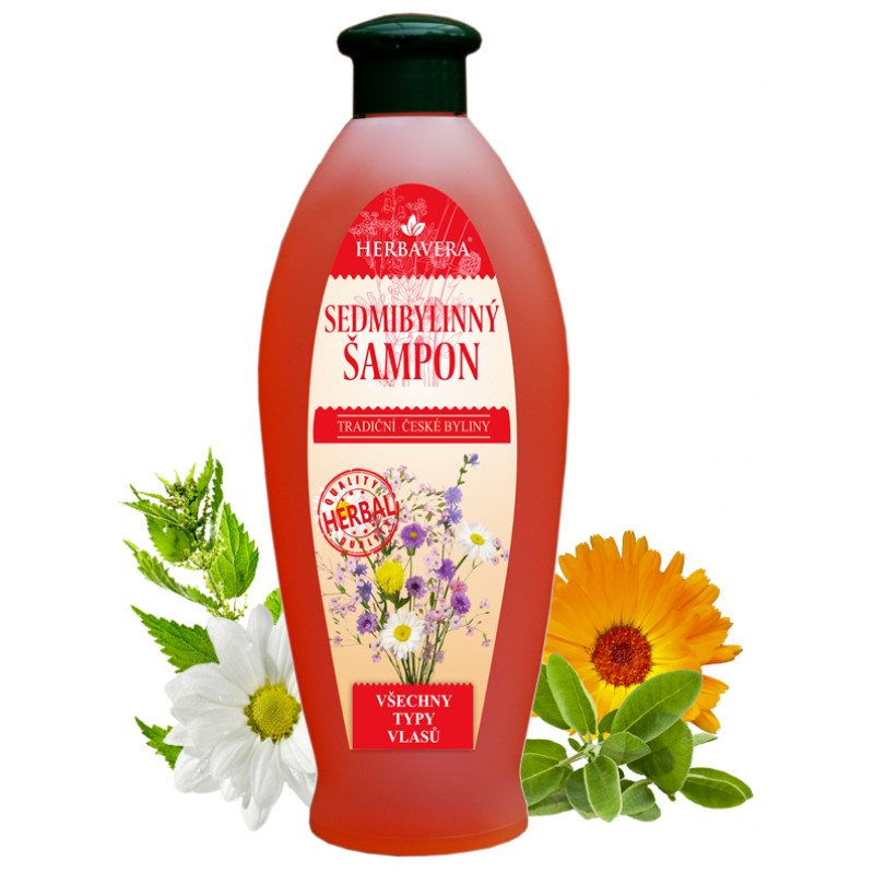 Sedmibylinný vlasový šampon pro všechny typy vlasů. Sedmibylinný šampon s panthenolem a kombinovaným účinkem výtažků kopřivy, měsíčku, břízy, šalvěje, přesličky, jitrocele a heřmánku je vhodný pro všechny typy vlasů. Panthenol vyživuje a napomáhá jejich regeneraci. Použité bylinky se svými účinky doplňují a zaručují pro vlasy komplexní péči. Vlasy jsou po umytí hebké, vláčné a mají zdravý lesk.
