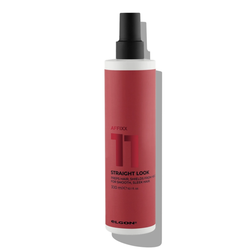 ELGON Affixx 11 Straight Look je stylingový sprej, který vám pomůže vytvořit dokonale hladký účes bez chemického zásahu do vlasů. Aktivuje se teplem, chrání vlasy při žehlení a fénování a zanechává je hebké, lesklé a chráněné před třepením konečků. Vhodný i pro husté a těžké vlasy.