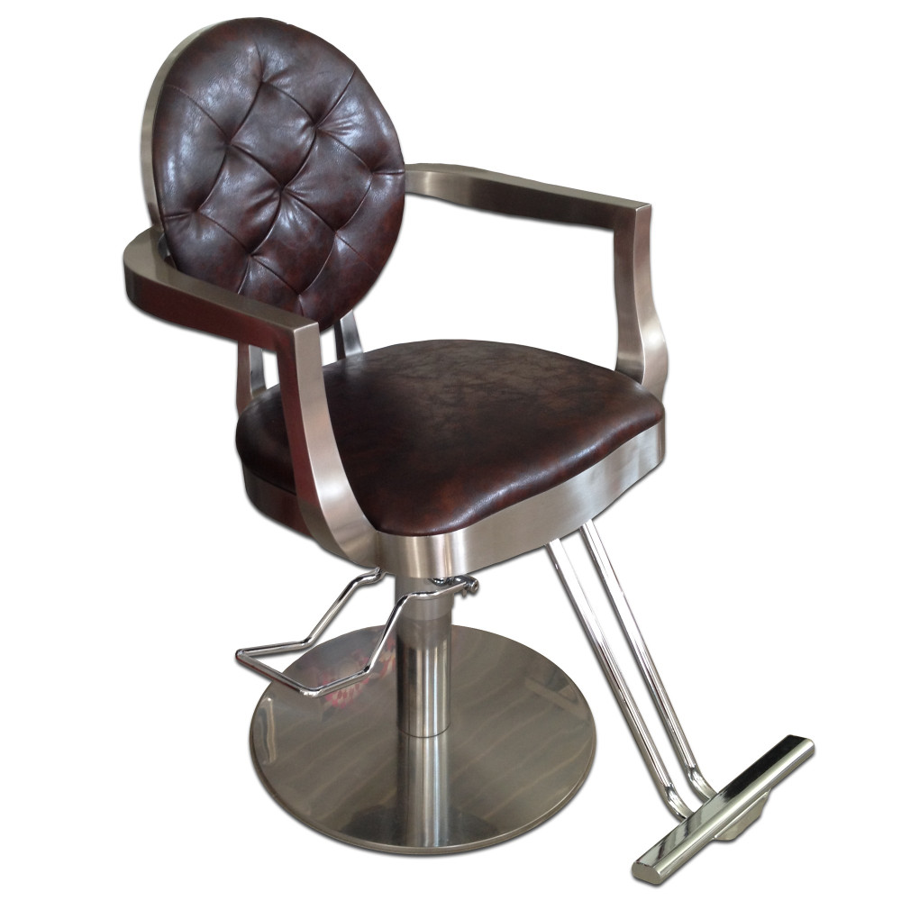 Stylové kadeřnické křeslo Karo s šedou koženkou.