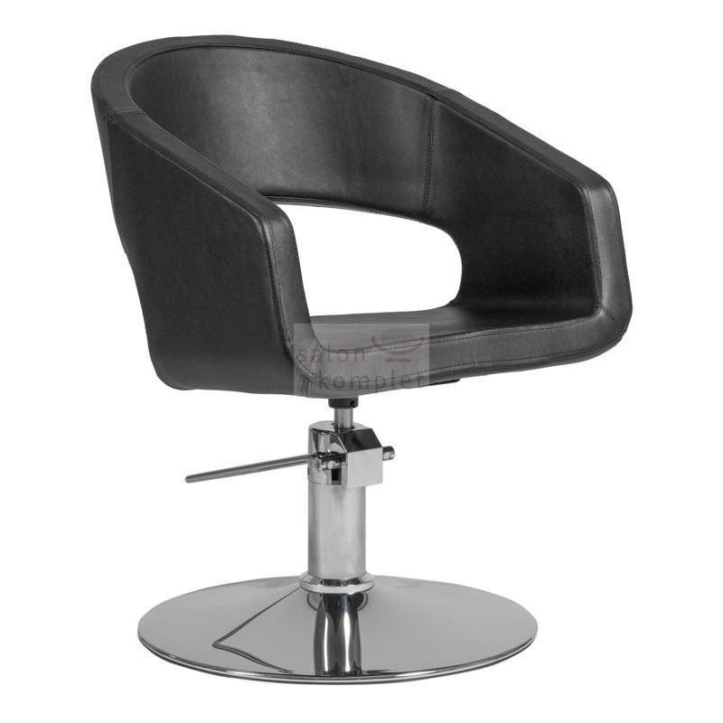 Velmi stylové kadeřnické křeslo v černém barevném provedení.