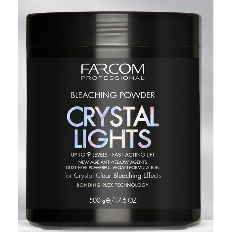 Vysoce účinný bělicí prášek FARCOM PROFESSIONAL CRYSTAL LIGHTS pro lesklý, chladný a čistý blond výsledek s křišťálovým leskem.